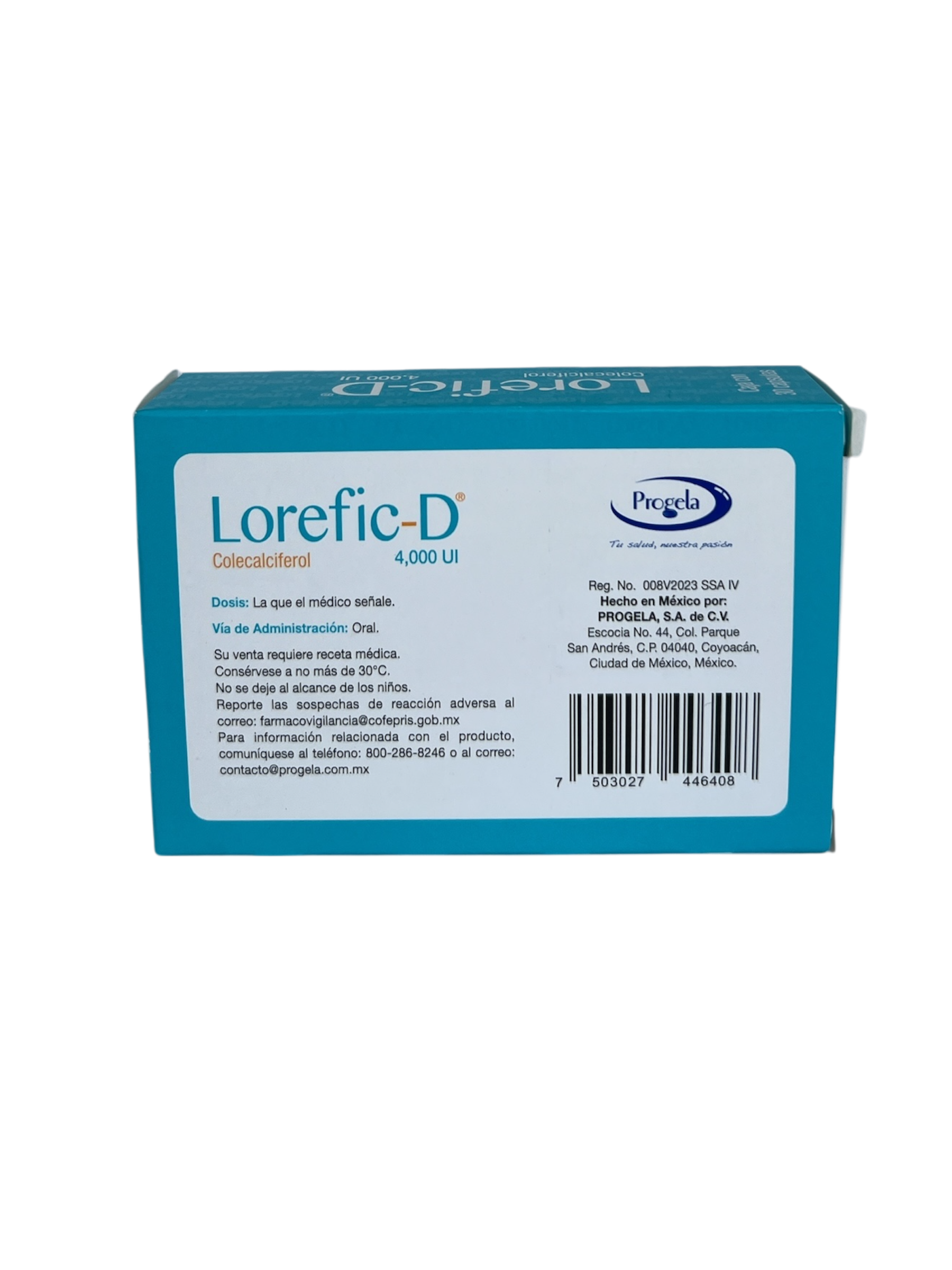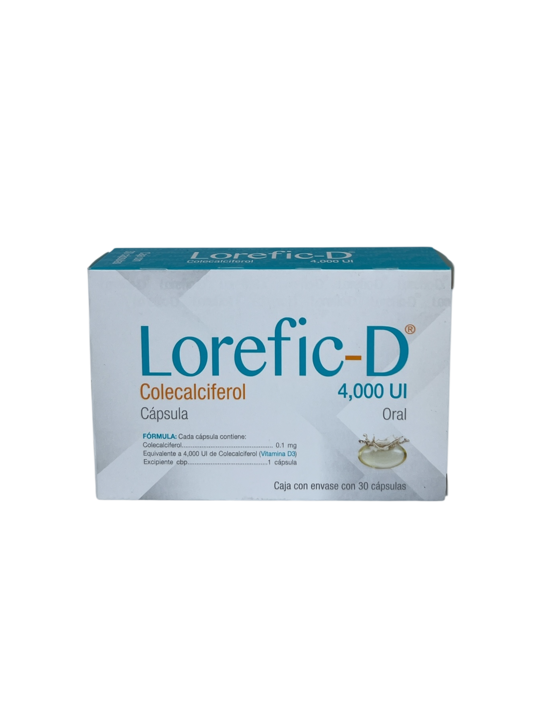 Caja con 30 capsulas, con 4000 UI de Colecalciferol (Vitamina D 3)